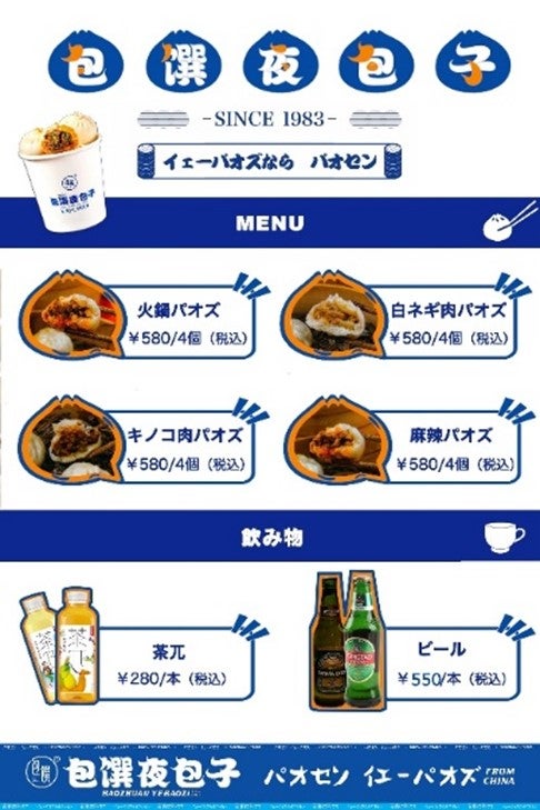 「火鍋パオズ」や「麻辣パオズ」をはじめとした一口肉まんが看板メニューで、作り立て・蒸したての肉まんは出来上がってから10分以内に食べることを推奨している。