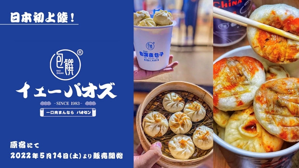 中国全土で約300店舗を展開する中華肉まんチェーン店「パオセン イエーパオズ」が日本初上陸。第1店舗目を東京・原宿に2022年5月14日(土)よりオープンする。