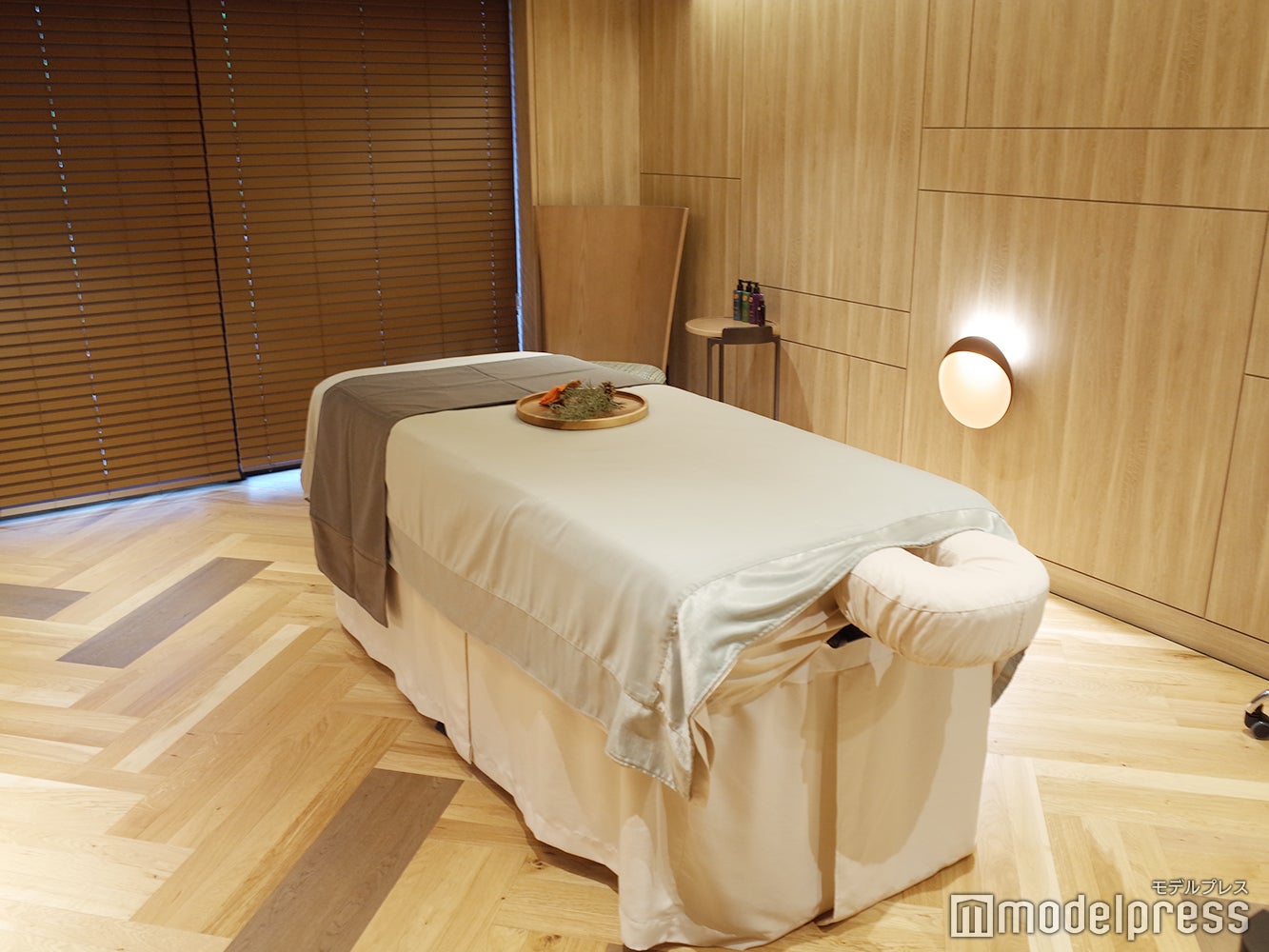 フィットネスセンターのトレーニング器具はどれもちょっと珍しい木製と、こんなところまでデザインへのこだわりが。「ザ・スパ by HARNN」ではHARNNの高品質な製品を融合させたトリートメント施術を受けられます。