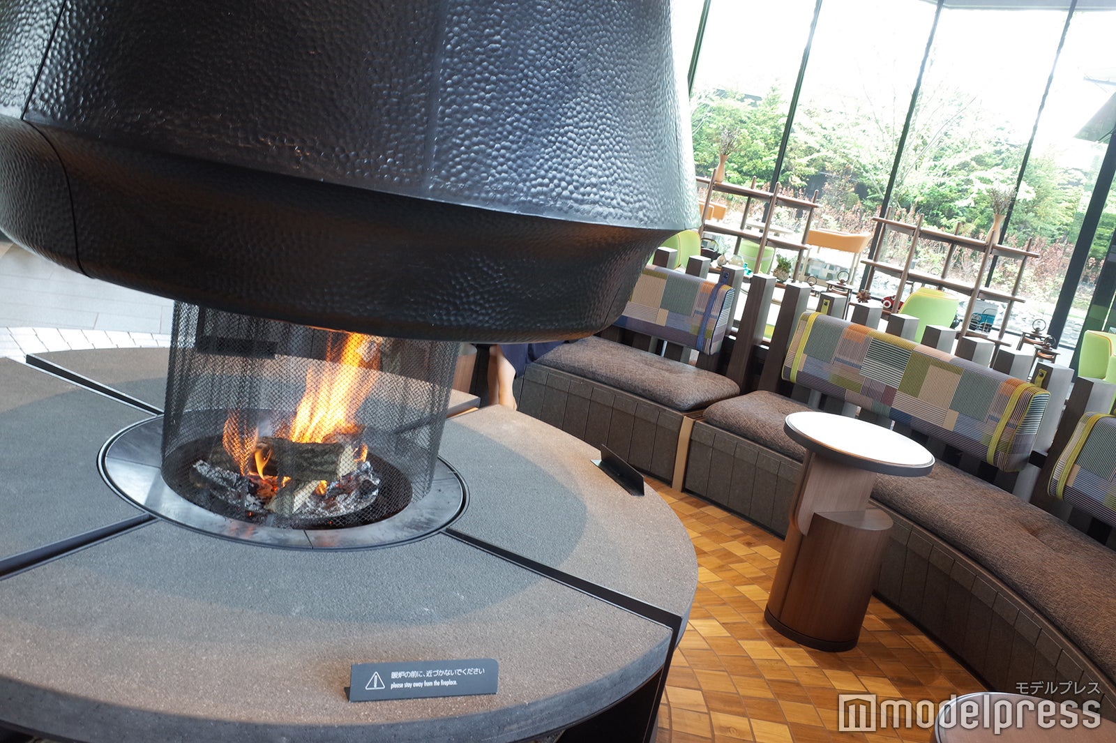 自然を眺め、心まで癒されるロビーラウンジ&焚き火ラウンジ