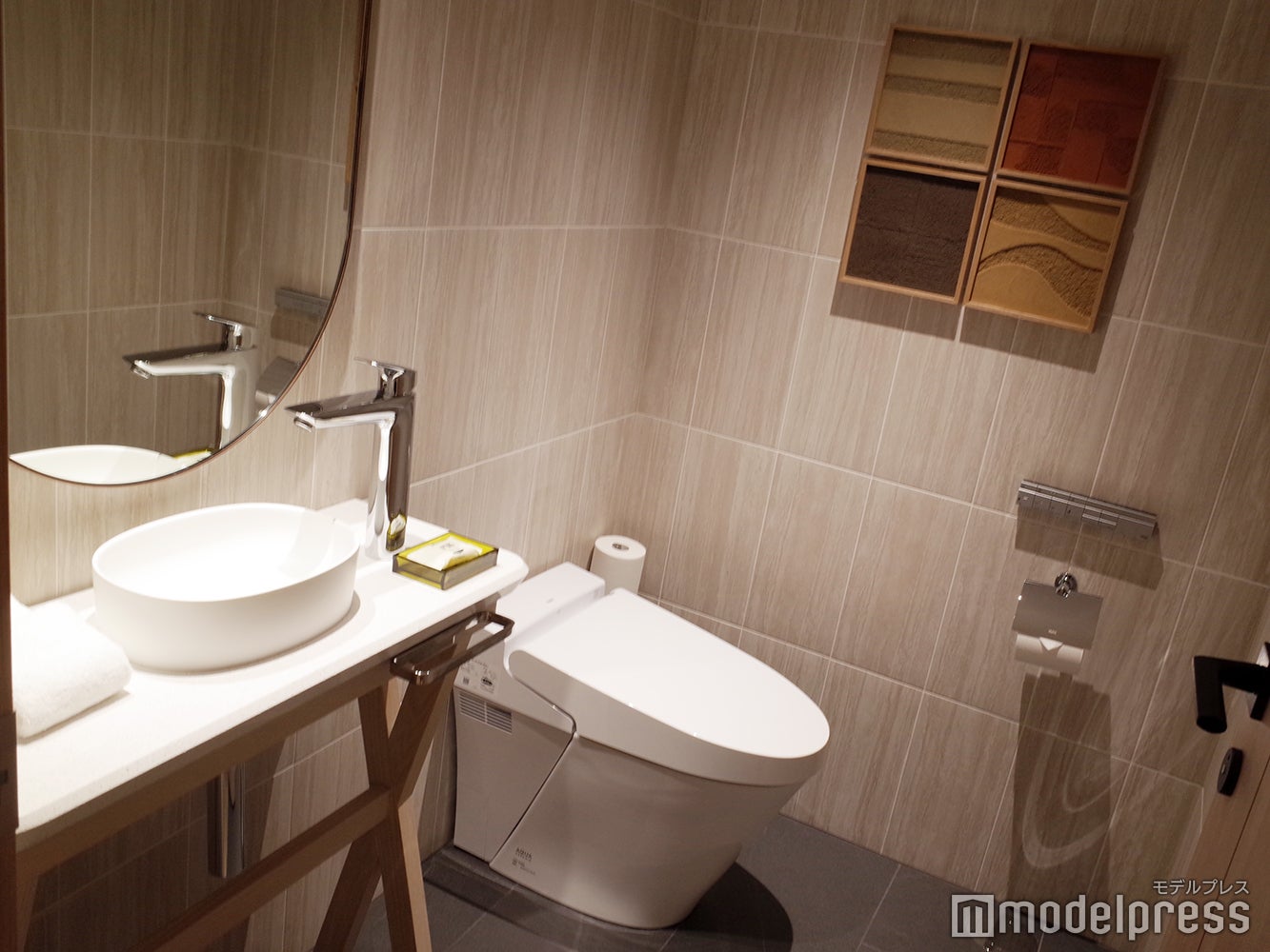 アメニティのバスグッズは全館統一でオーストラリア発のバイオロジーのものを使用。エコの観点から、ミニボトルでなく、詰め替えて繰り返し使えるフルボトルを採用しているそう。