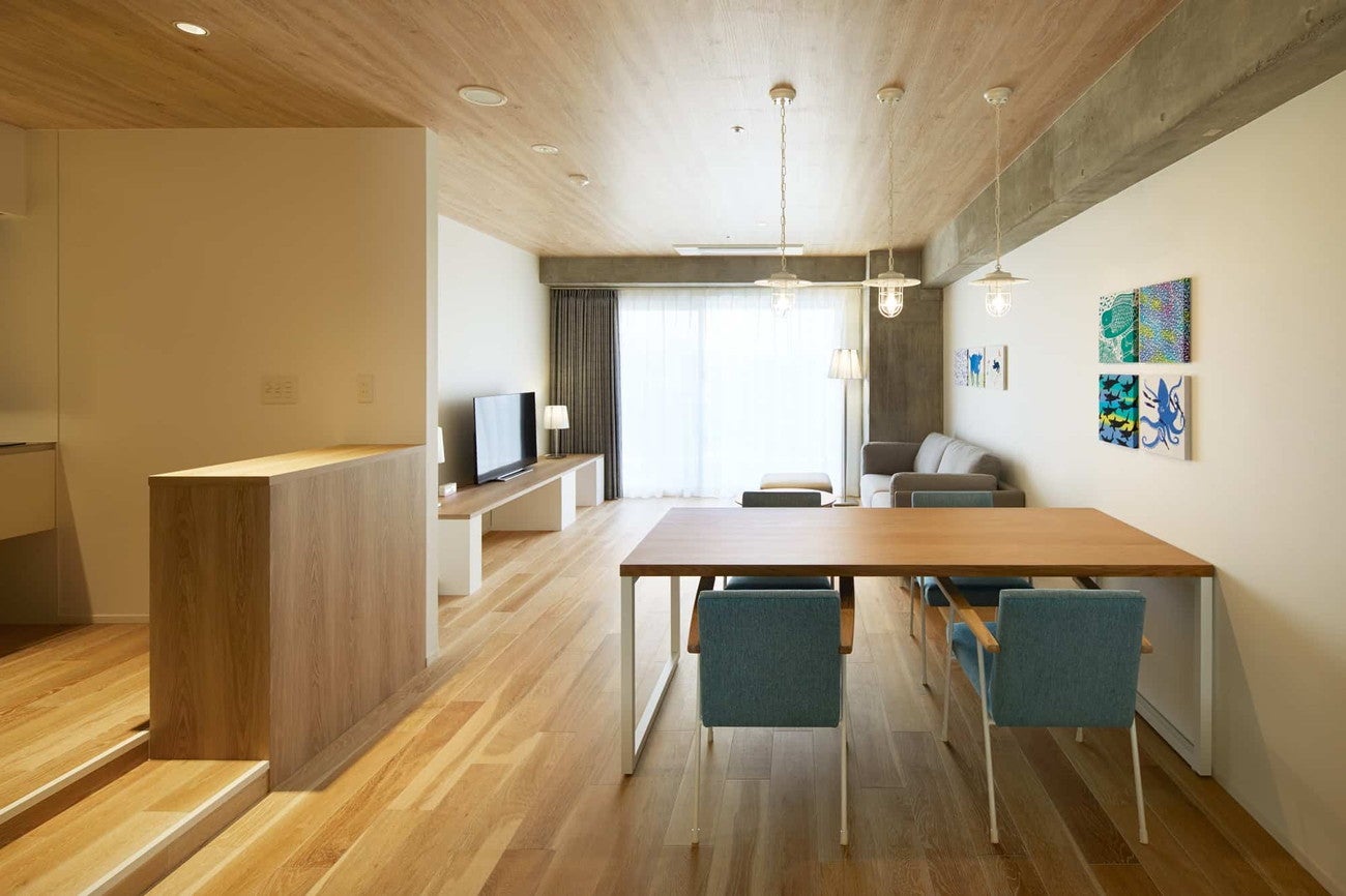 宿泊料金は1泊9,000円~。全室キッチン・ランドリーを完備したコンドミニアムタイプの客室、時間オープンの開放的なパブリックスペース「TAMARIBA(タマリバ)」、ガゼボ付きプールを備え、ルーズに、快適に過ごせる沖縄ステイを提供する。