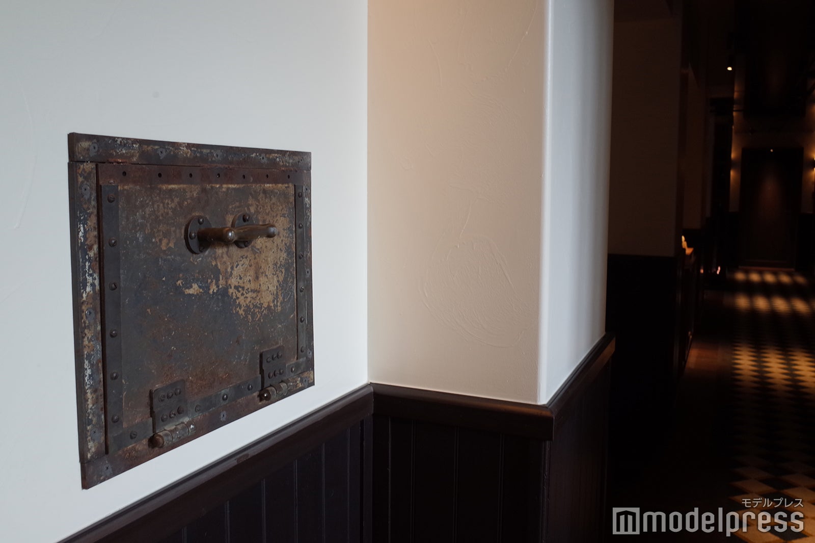 ホテル1階には宿泊者であれば滞在期間に自由にご利用いただけるゲストラウンジを併設。かつての音楽室を改装したアーカイブコーナーの隅に入口があり、こちらも出入りの際はカードキーが必須です。