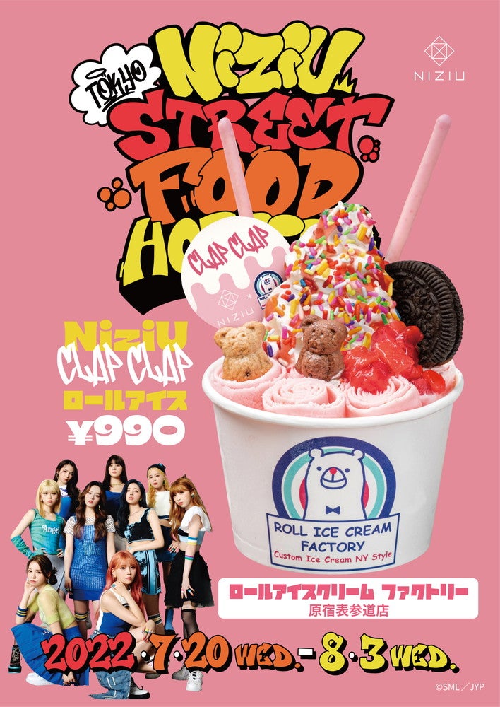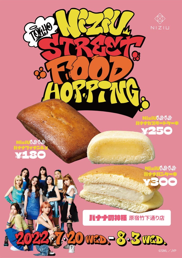 9人組ガールズグループ・NiziUと、東京・原宿エリアのグルメスポット9店舗がコラボレーションした体験型フードイベント「NiziU TOKYO STREET FOOD HOPPING」が、2022年8月3日(水)まで開催されている。