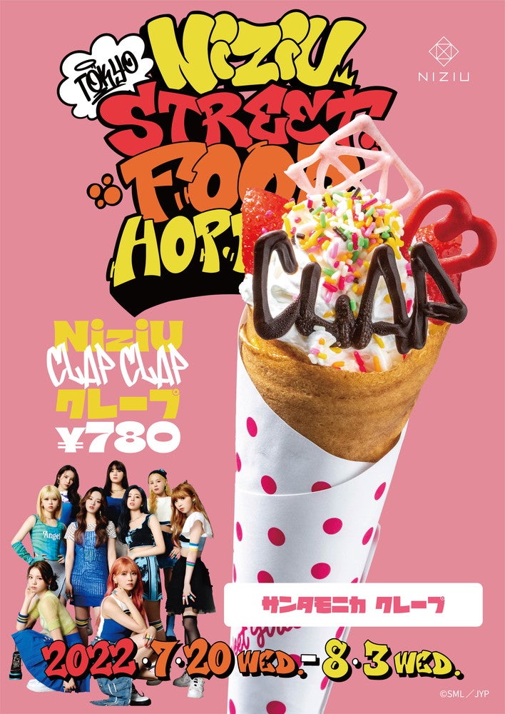 「NiziU TOKYO STREET FOOD HOPPING」は、NiziUの3rdシングル「CLAP CLAP」リリースを記念し、原宿を中心に、9つのコラボグルメスポットを巡り、食べて、見て、買ってNiziUを感じられる“美味しい体験型フードイベント”。