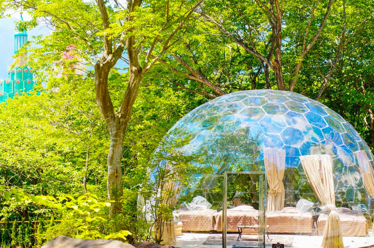 透明グランピングドームから青空を見上げる「ソランピング」那須にオープン