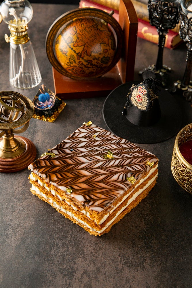 マロンコンフィを忍ばせたバニラ風味のチョコレートババロアの上に、イタリア産マロンクリームで魔女の帽子をイメージした「オナーズウィッチの証明」、瀬戸内レモンのレアチーズムースの上に焦がしオレンジとはちみつゼリーのクラッシュ、更にチョコレートのレースでまわりを覆った「死者の魂を鎮めないレクイエム」、ザクロの酸味をうつしたキャラメルシロップで煮込んだリンゴが入ったアーモンド香るパンドジェーヌ「新入生を歓迎しないりんごケーキ」、リ・オレのババロアをスペキュロス風味のムースで包み、中に杏子とオレンジのコンフィーやミラベルプラムを配した「ホームシックの新入生に贈る呪文ケーキ」など、バラエティに富んだスイーツが並ぶ。