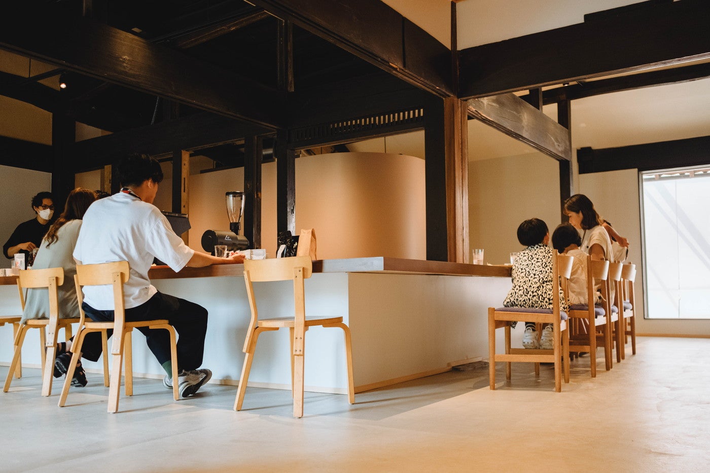 大きな丸太の梁や竹小舞土壁など、もともとの特徴を随所に残しつつ、趣を感じられる新旧が融合した空間で、味わい深いスペシャルティコーヒーと香り引き立つスパイスカレーをメインに、チーズケーキやプリンなどのスイーツも提供する。