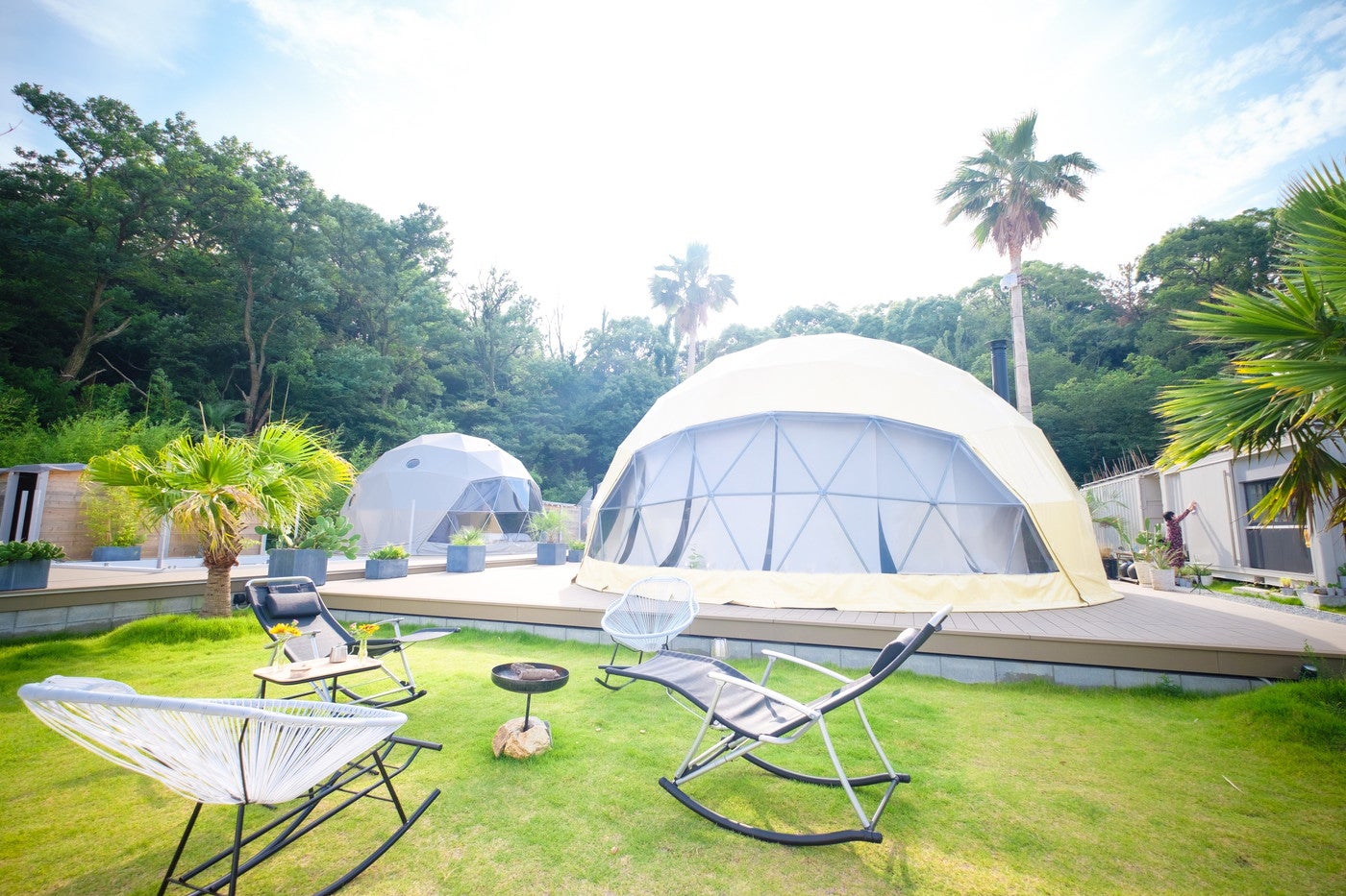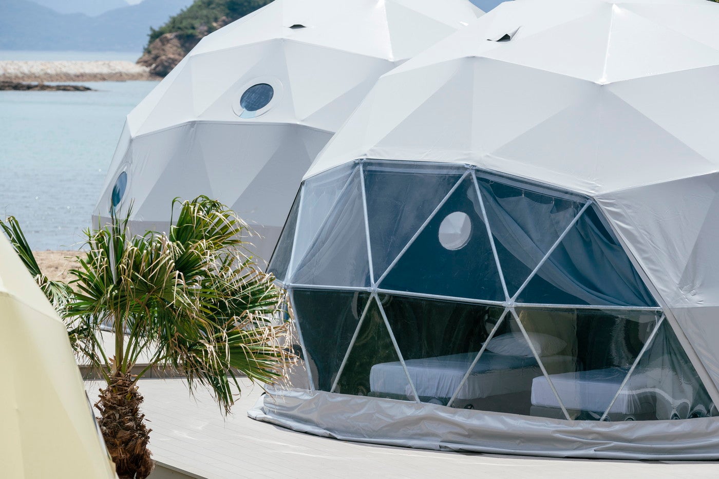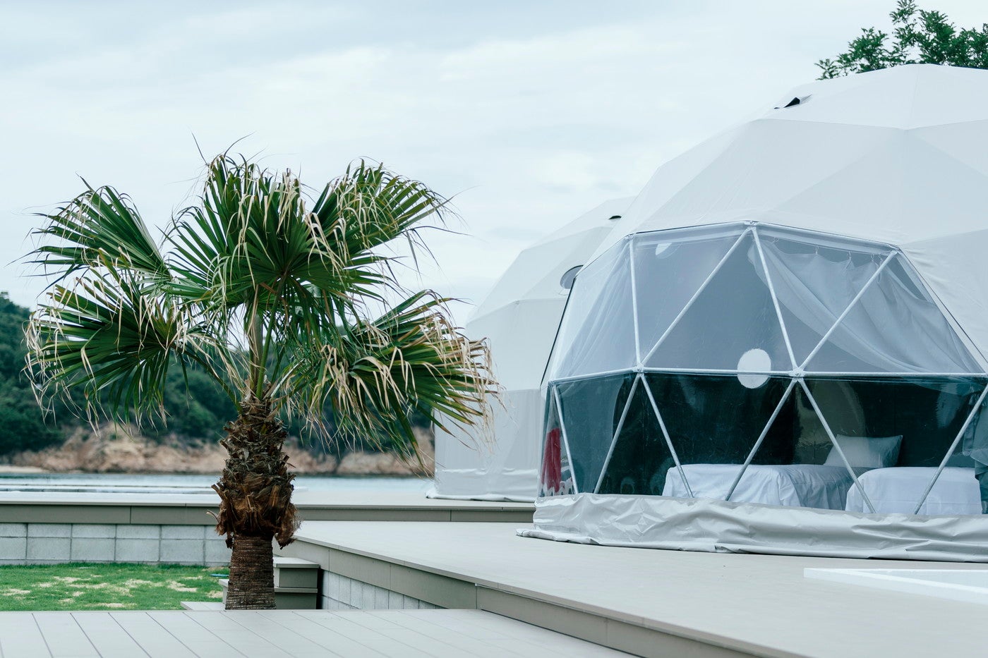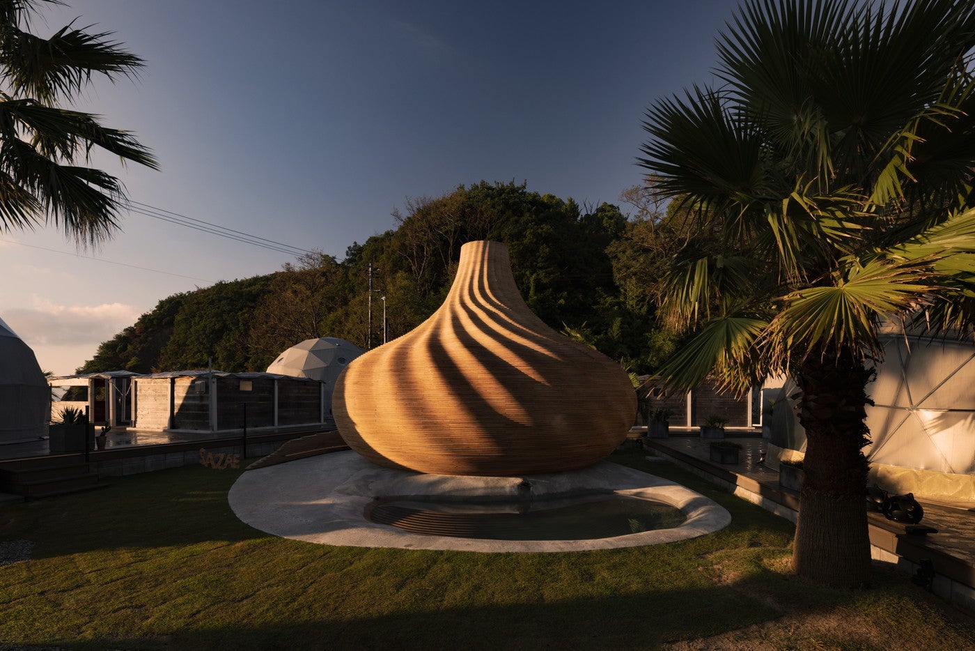 香川県・直島のグランピング型リゾート施設「SANA MANE GLAMP DOMES」に、宿泊者限定の貸切サウナ「SAZAE(サザエ)」がオープンした。世界でも類を見ない貝を模したデザインの、曲線美が目を引くフォルムのサウナとなっている。