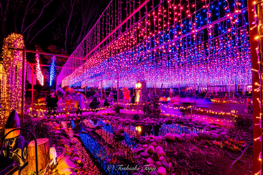 国営武蔵丘陵森林公園は、首都圏の公園の中でも、とりわけカエデの種類が豊富で、赤・黄・オレンジだけでなく、ピンクに近い色彩に色づくものがあり、種類によって葉の形・大きさが様々なカエデの違いを楽しめるのが特長。街なかのイルミネーションとはひと味違った、自然いっぱいの森林公園ならでの幻想的な世界が広がる。