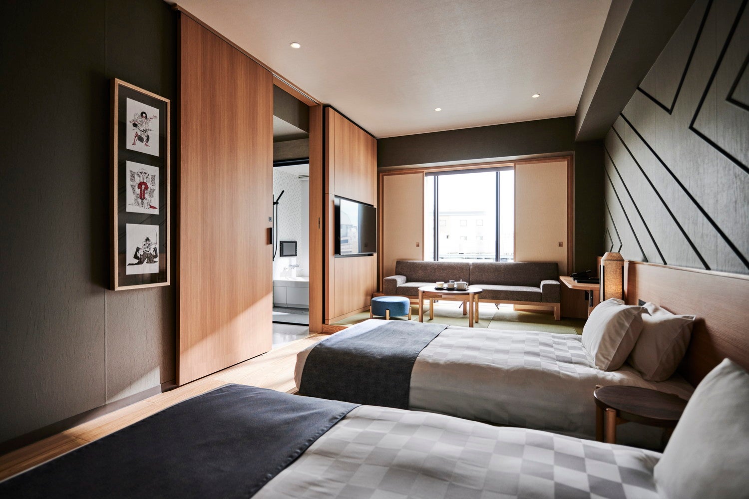 機能性を重視した「スタンダード」、ゆっくりと寛げる畳敷きの「モデレート」、小上がりのリビングとビューバスを設けた「デラックス」、浅草・江戸・歌舞伎の世界に身を置く「コンセプト」の4タイプを展開。うち35室がインバウンド需要を見込んだ和室・和洋室となっている。
