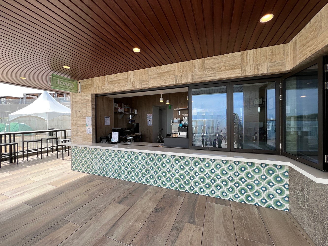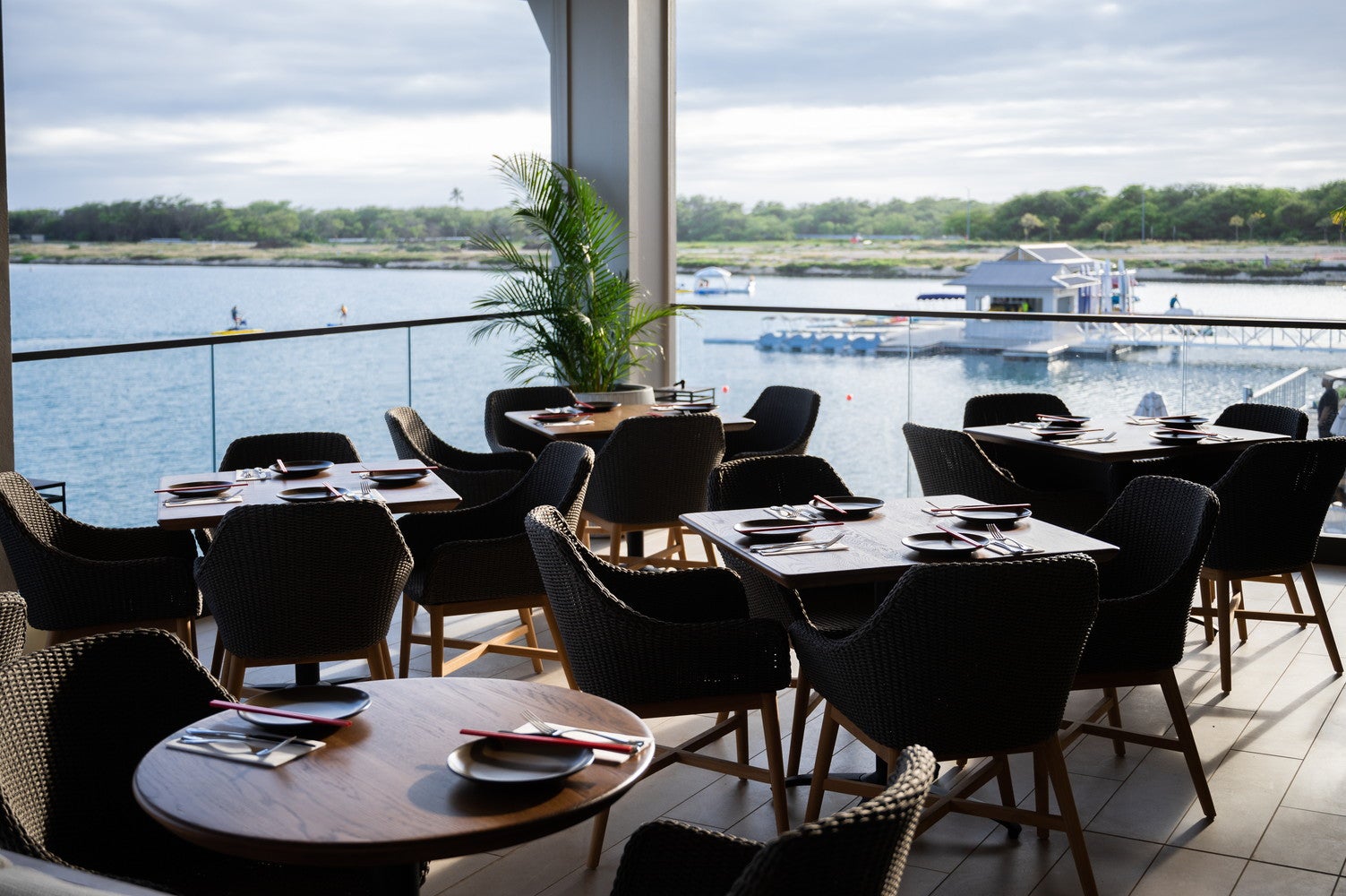 オーシャンフレンドリーレストランである「ルックアウト・フード&ドリンク」は、広々としたラナイとウェーブデッキからサーフィンを最前列で見ることができ、目の前に広がる「ワイカイラグーン」や、きらめく太平洋を遮るものなく眺められる。