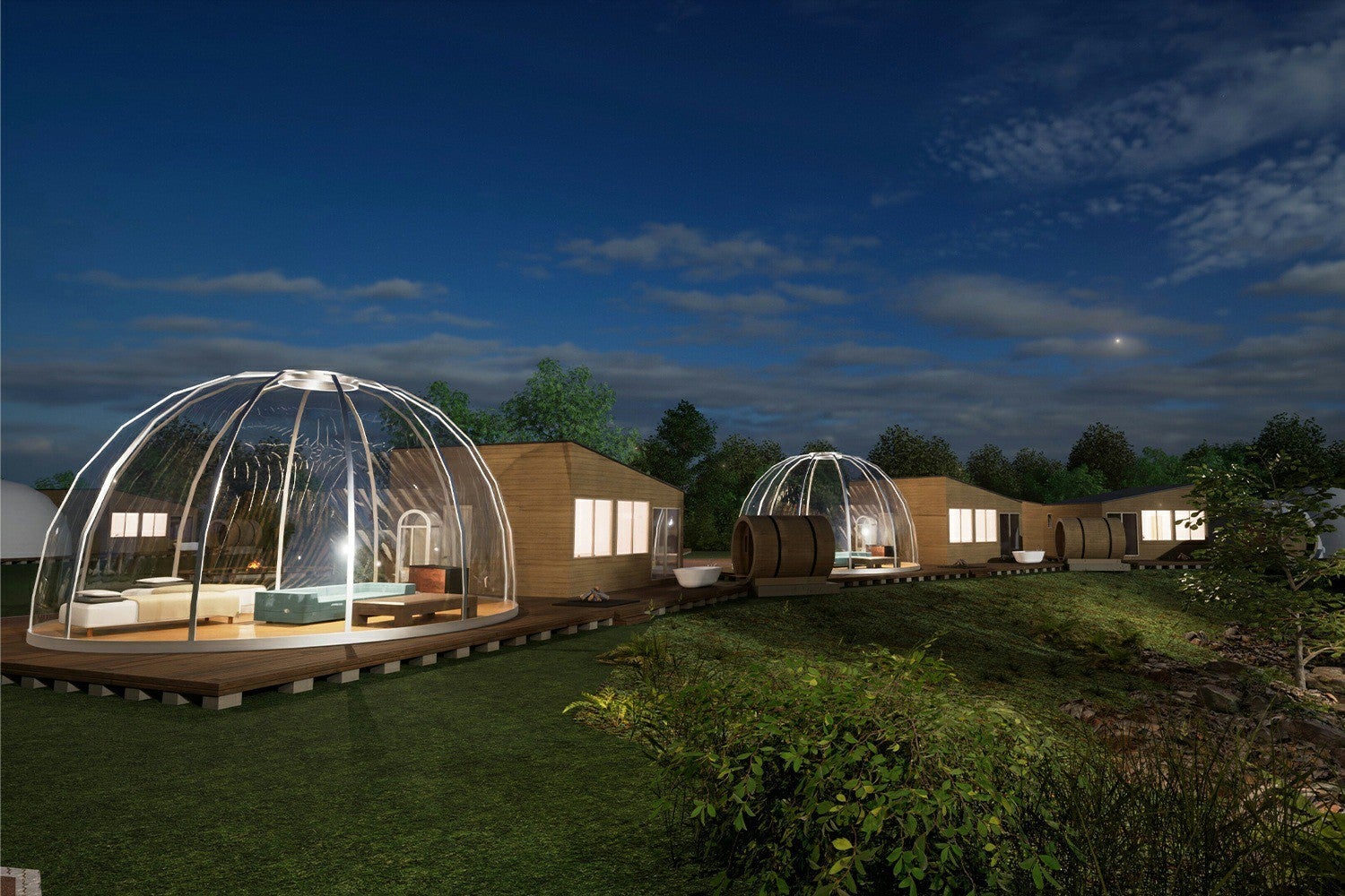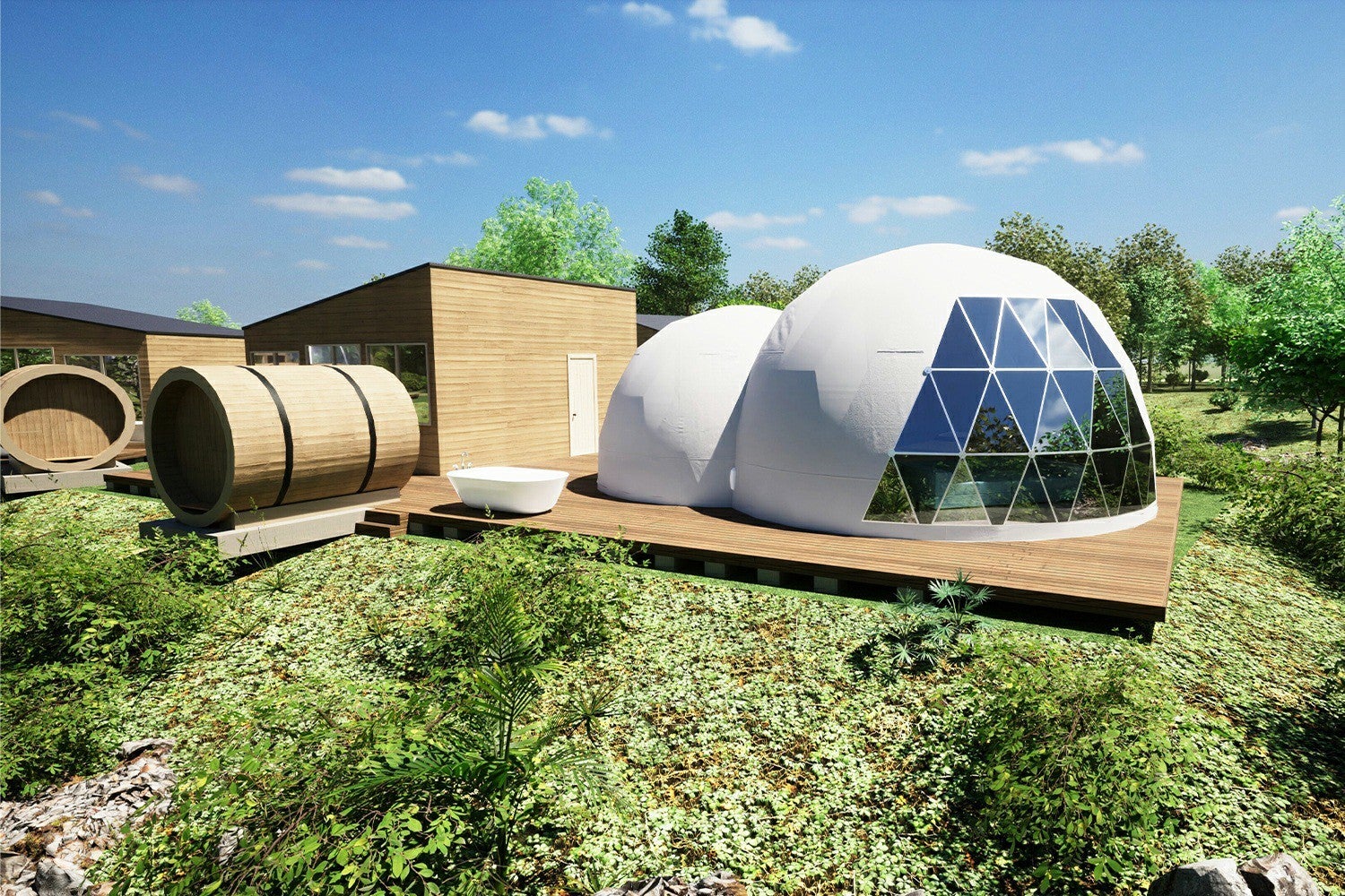 那須に「グランピングB&V 那須高原」全棟温泉・サウナ・焚き火付きの贅沢アウトドア滞在