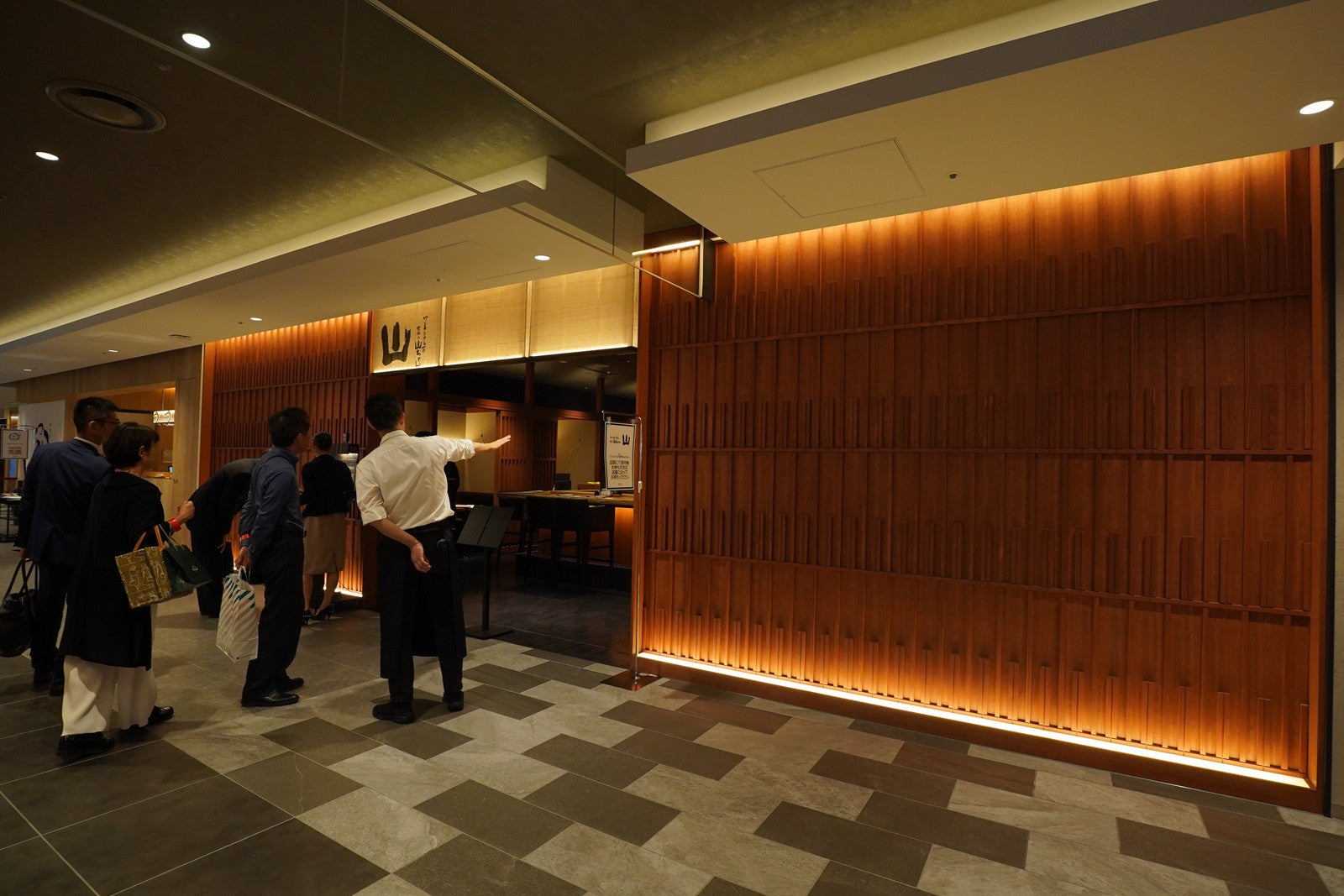 4階~5階のレストランフロアでは、シンガポールの中華店「東寶(ドン・バオ)」が日本初上陸するほか、アメリカ・ニューヨーク発のステーキ専門店「ベンジャミンステーキハウス」、石川県能登半島・和倉温泉の名旅館「加賀屋」の味を伝える「日本料理 加賀屋」、博多もつ鍋専門店「博多もつ鍋おおやま」、奈良発の炭火焼うなぎ屋「うなぎ川はら」、黒毛和牛焼肉コース専門店「黒毛和牛焼肉 ABURIYA arata」など、日常の食事からハレの日の会食まで多様なシーンで利用できる魅力的な飲食店が営業。