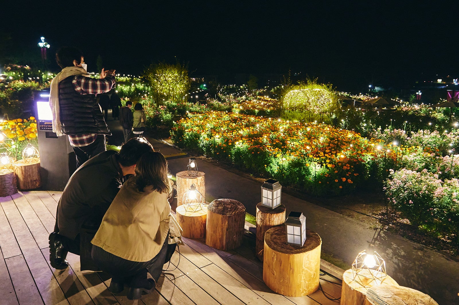 同イベントでは、会期を2部制(第1部:2024年10月5日(土)〜11月29日/第2部:2024年11月30(土)〜2025年1月13日(月・祝))とし、各シーズンごとに見ごろを迎える花とイルミネーションの融合により、幻想的な空間を演出する。