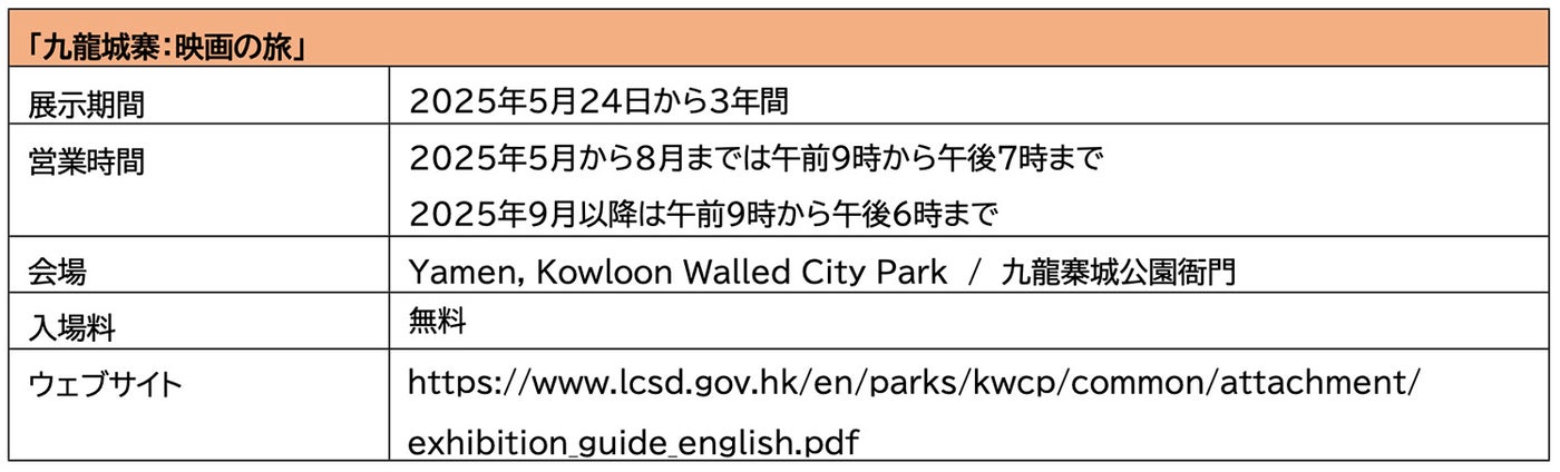 同展は、数々の賞を受賞した香港映画『トワイライト・ウォリアーズ 決戦!九龍城砦』をテーマとした、香港最大規模の映画セット展。物語の舞台となった旧九龍寨城(現在の九龍寨城公園)にて、1980年代の九龍寨城の雰囲気とともに映画の主要シーンが再現される。