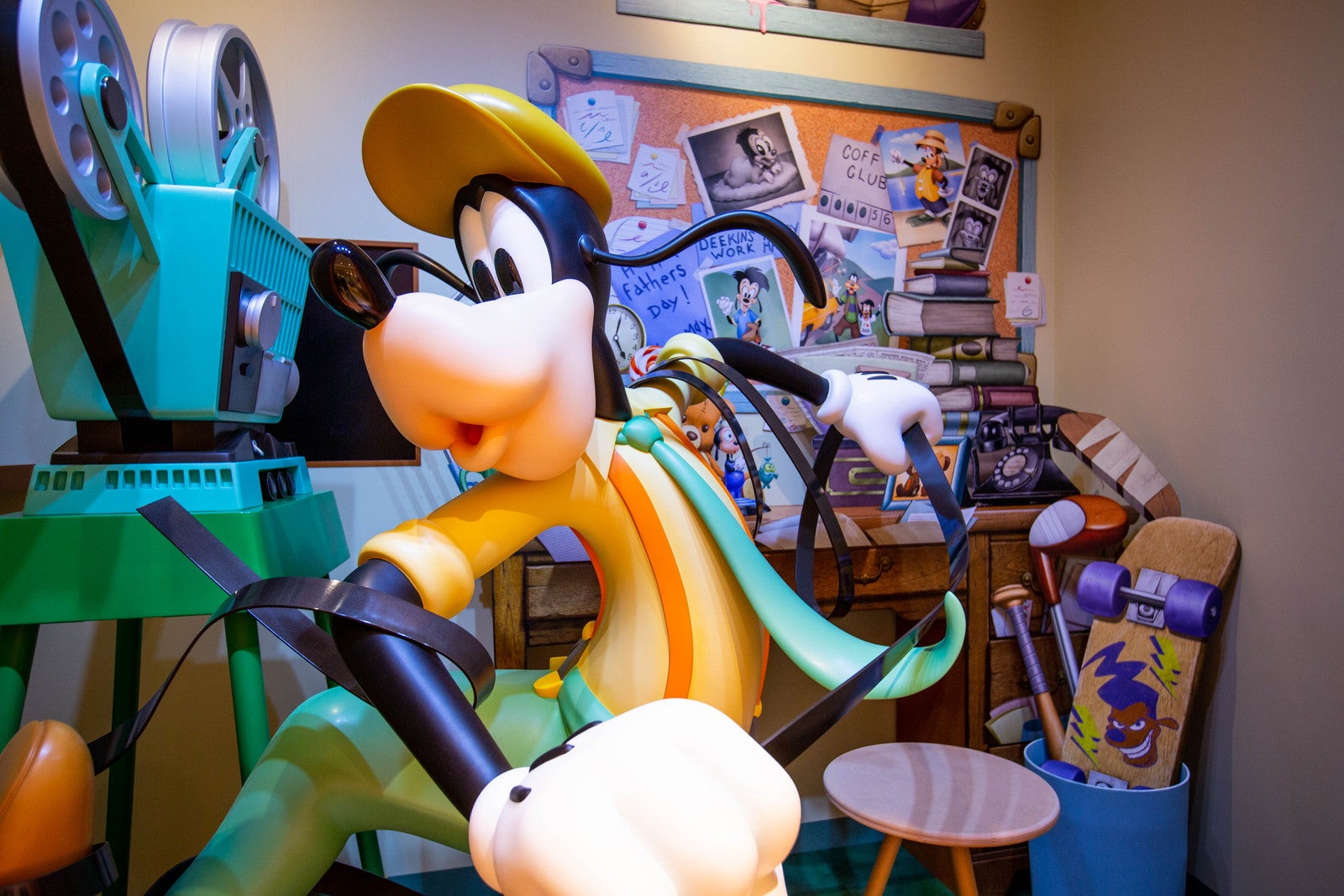 また、映写室をイメージした店内後方の新エリアには、映写技師に扮したグーフィーが登場するなど、見どころも盛りだくさん。あわせて、キャストコスチュームも一新した。