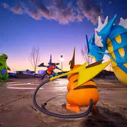 ここにはポケモンをモチーフとした2つのアトラクションが存在。「ピカピカパラダイス」は30匹以上のでんきタイプのポケモンたちが動かすライドアトラクション。ピカチュウに乗って爽快な空中散歩を体験できる。